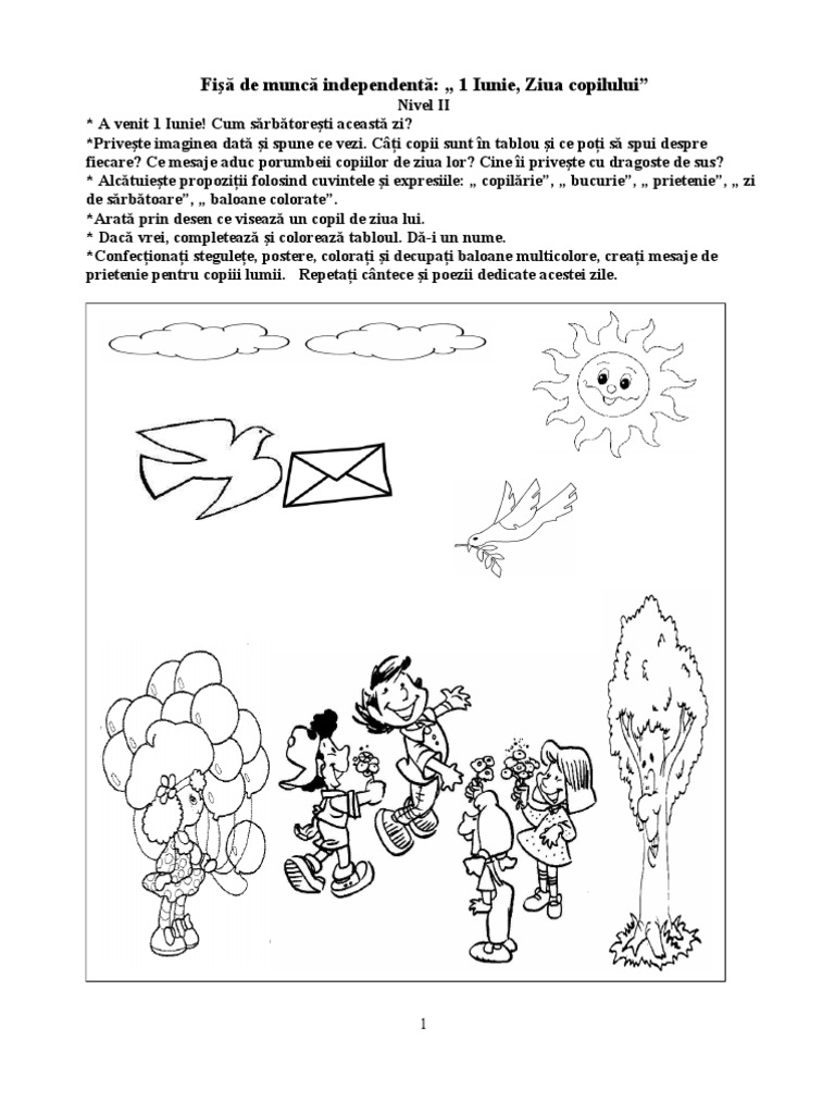 Vezi aici alte planse de colorat 1 iunie. Suntem astăzi mai voioşi căci avem serbare e ziua copiilor e zi de sărbătoare. 1 iunie, o zi doar pentru copii. Am zis traditie pentru ca. Dintre arte, desenul este forma cea mai apropiată copiilor.